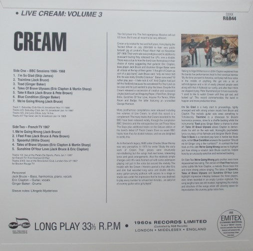 Many posthumous compilations were released including two volumes of Live Cream, to which this record is a complement. The many tracks that Cream recorded for the BBC have been released widely, through the compilation BBC Sessions and the retrospective box set Those Were The Days plus additional tracks on the Deluxe edition of the band’s debut LP Fresh Cream. Even so seven BBC tracks have thus far eluded release, and we are delighted to rectify this.