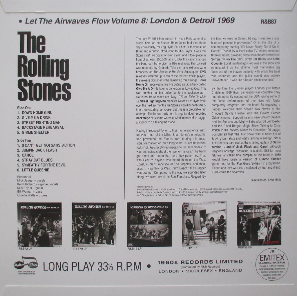 Tracks 1 – 4 recorded live in Hyde Park, London July 5th 1969 broadcast on Dutch Radio Veronica, July 15th 1969