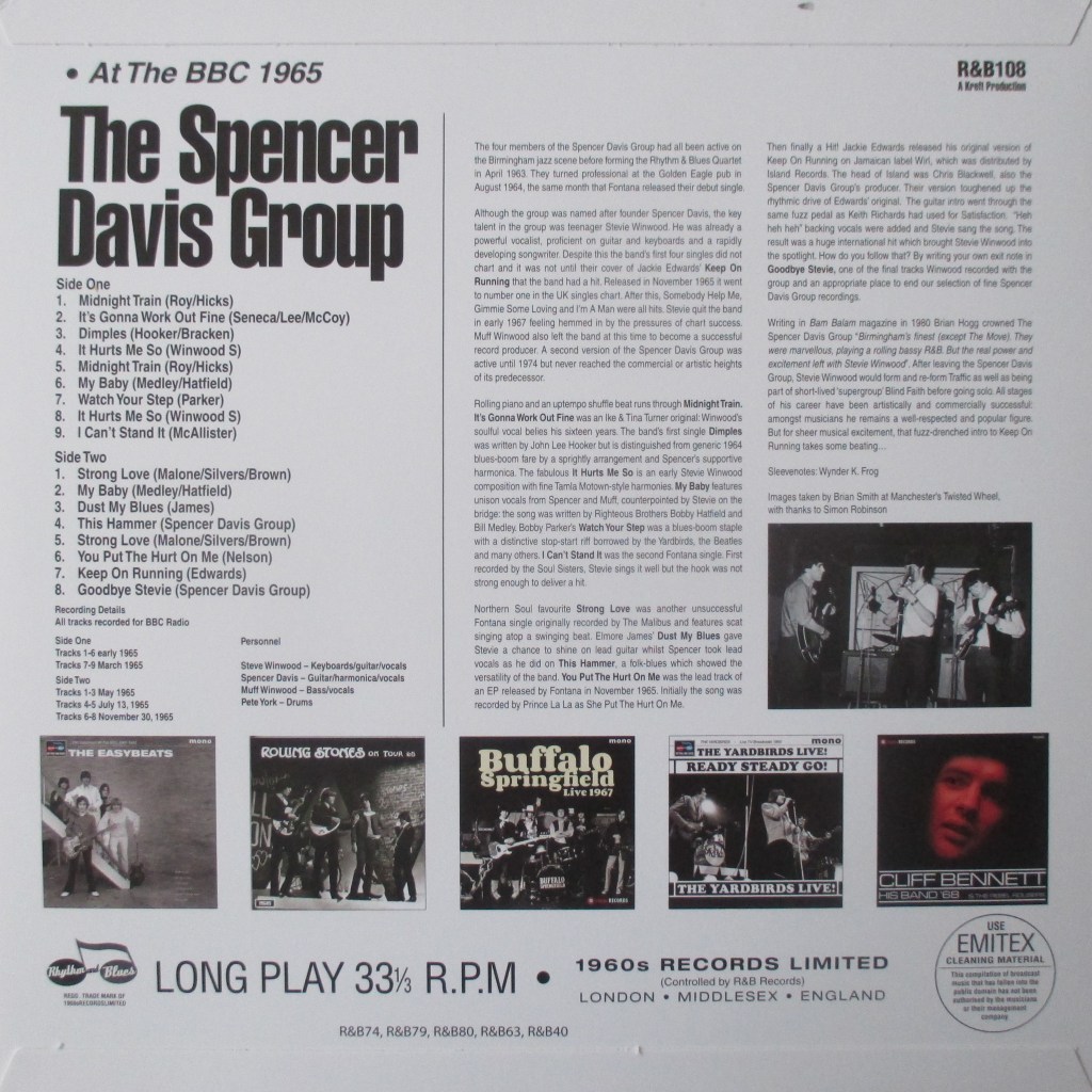 Northern Soul favourite Strong Love was another unsuccessful Fontana single, originally recorded by The Malibus and features scat singing atop a swinging beat. Elmore James’ Dust My Blues gave Steviea chance to shine on lead guitar whilst Spencer took lead vocals, as he did on This Hammer, a folk-blues which showed the versatility of the band. You Put The Hurt On Me was the lead track of an EP released by Fontana in November 1965. Initially the song was recorded by Prince La La as She Put The Hurt On Me, subsequently Otis Redding would be given the songwriting credit.