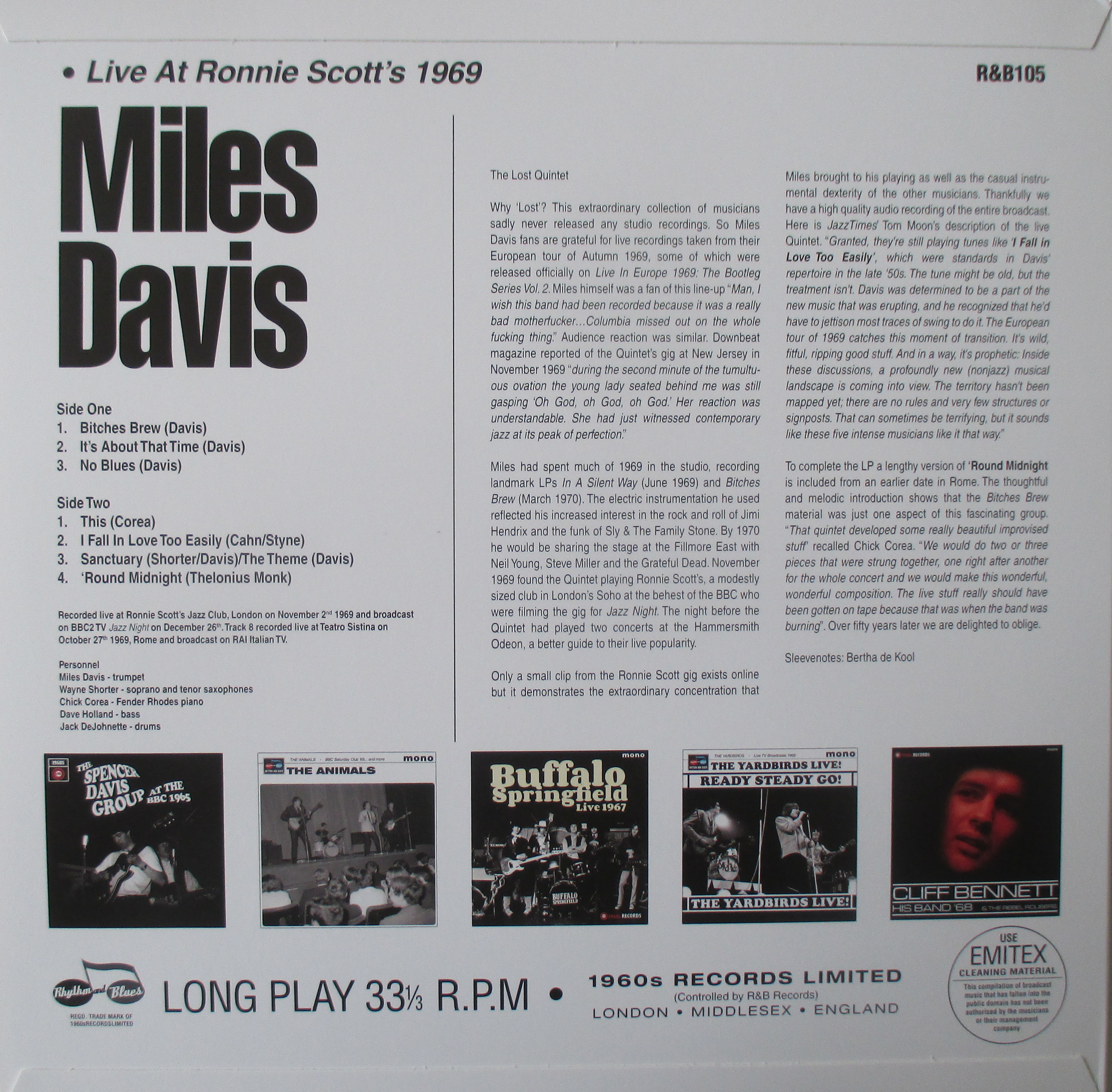 Miles had spent much of 1969 in the studio, recording landmark LPs In A Silent Way (June 1969) and Bitches Brew (March 1970). The electric instrumentation he used reflected his increased interest in the rock and roll of Jimi Hendrix and the funk of Sly & The Family Stone. By 1970 he would be sharing the stage at the Fillmore East with Neil Young, Steve Miller and the Grateful Dead. November 1969 found the Quintet playing Ronnie Scott’s, a modestly sized club in London’s Soho at the behest of the BBC who were filming the gig for Jazz Night. The night before the Quintet had played two concerts at the Hammersmith Odeon, a better guide to their live popularity.