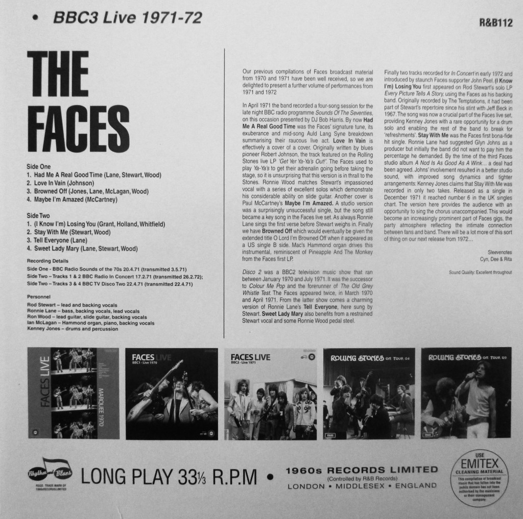 Our previous compilations of Faces broadcast material from 1970 and 1971 have been well received, so we are delighted to present a further volume of performances from 1971 and 1972