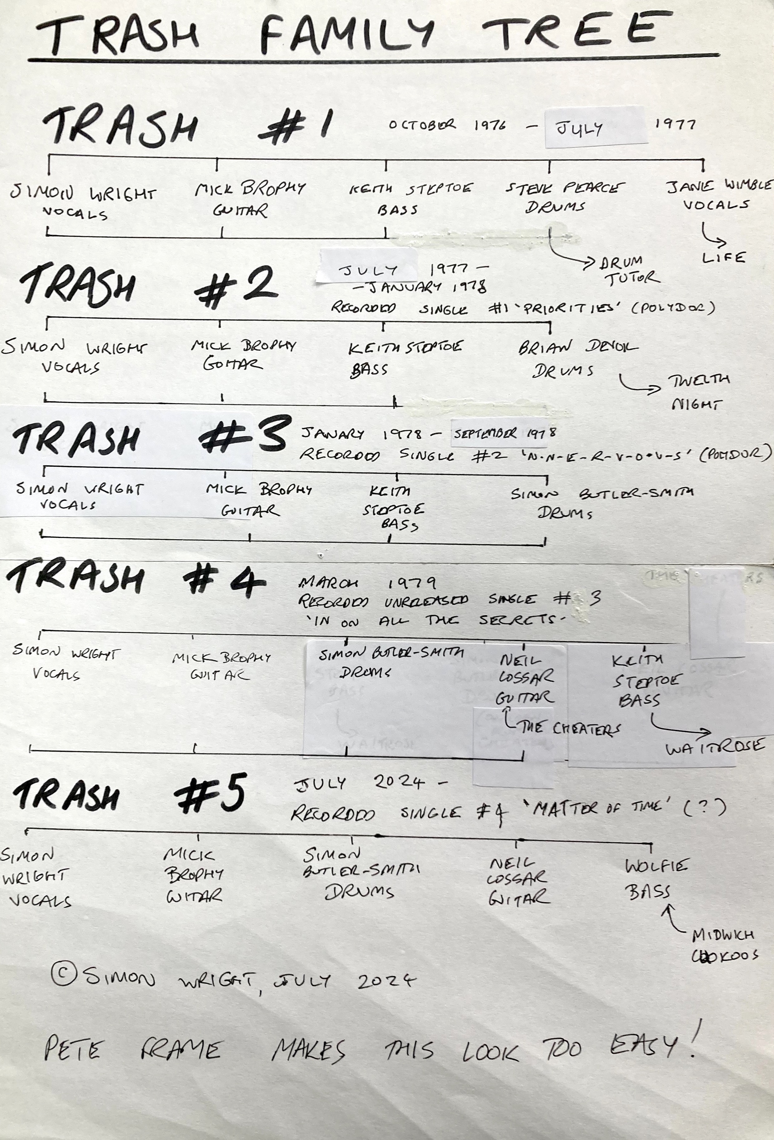 As we approach the release of our new single, here’s a summary of the last 49 years! Done in the style of the legendary Pete Frame, but more a Family Twig…