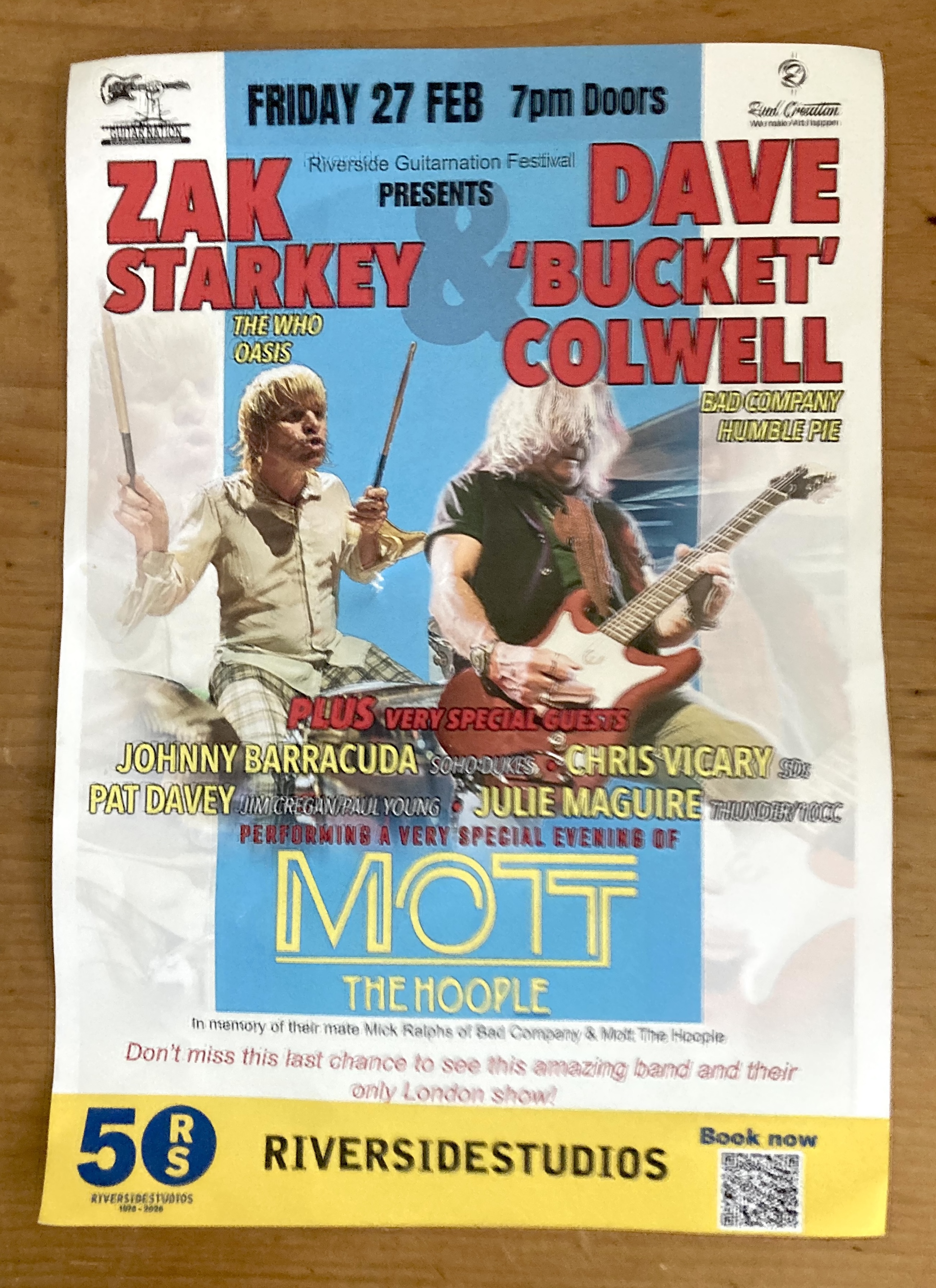Fronted by Dave ‘Bucket” Colwell (Bad Company / Humble Pie) on guitar and Zak Starkey (Who / Oasis) on drums, this was a moving and musically accurate tribute to Mick Ralphs-era Mott. The opening salvo of All The Way From Memphis and Rock and Roll Queen were tight and to the point. Thereafter the band – Johnny Barracuda, Chris Vicary, Pat Davey and Julie Maguire – alternated between hits such as The Golden Age of Rock and Roll, Saturday Gigs and Roll Away The Stone and less well known songs such as Midnight Lady, Sweet Angeline, Thunderbuck Ram and Walking With A Mountain (complete with authentic Jumpin’ Jack Flash coda). Closing with All The Young Dudes, an enthusiastic crowd brought the band back for Zak to have one last thrash on Substitute.